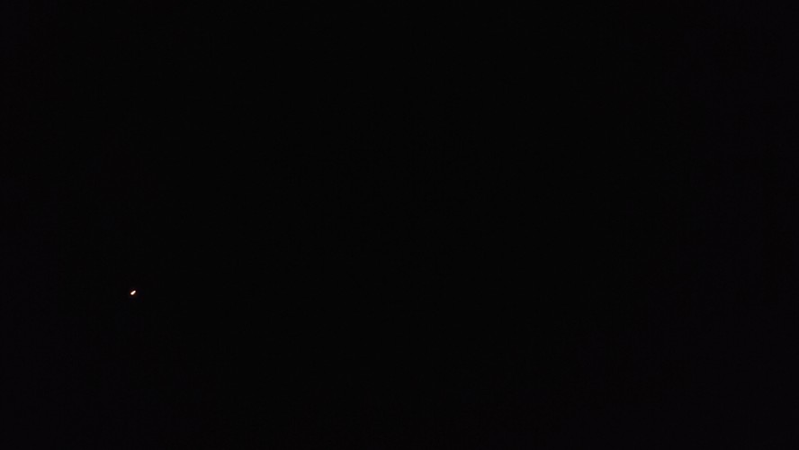 Es wird schnell dunkel. Die Sphäre eröffnst den Blick auf den Sternenhimmel und damit leider auch auf die Raketenflugbahn. Sehr schnelle, dunkelgelbe Punkte sind kein gutes Zeichen. Das sind die Antriebe der Raketen.
