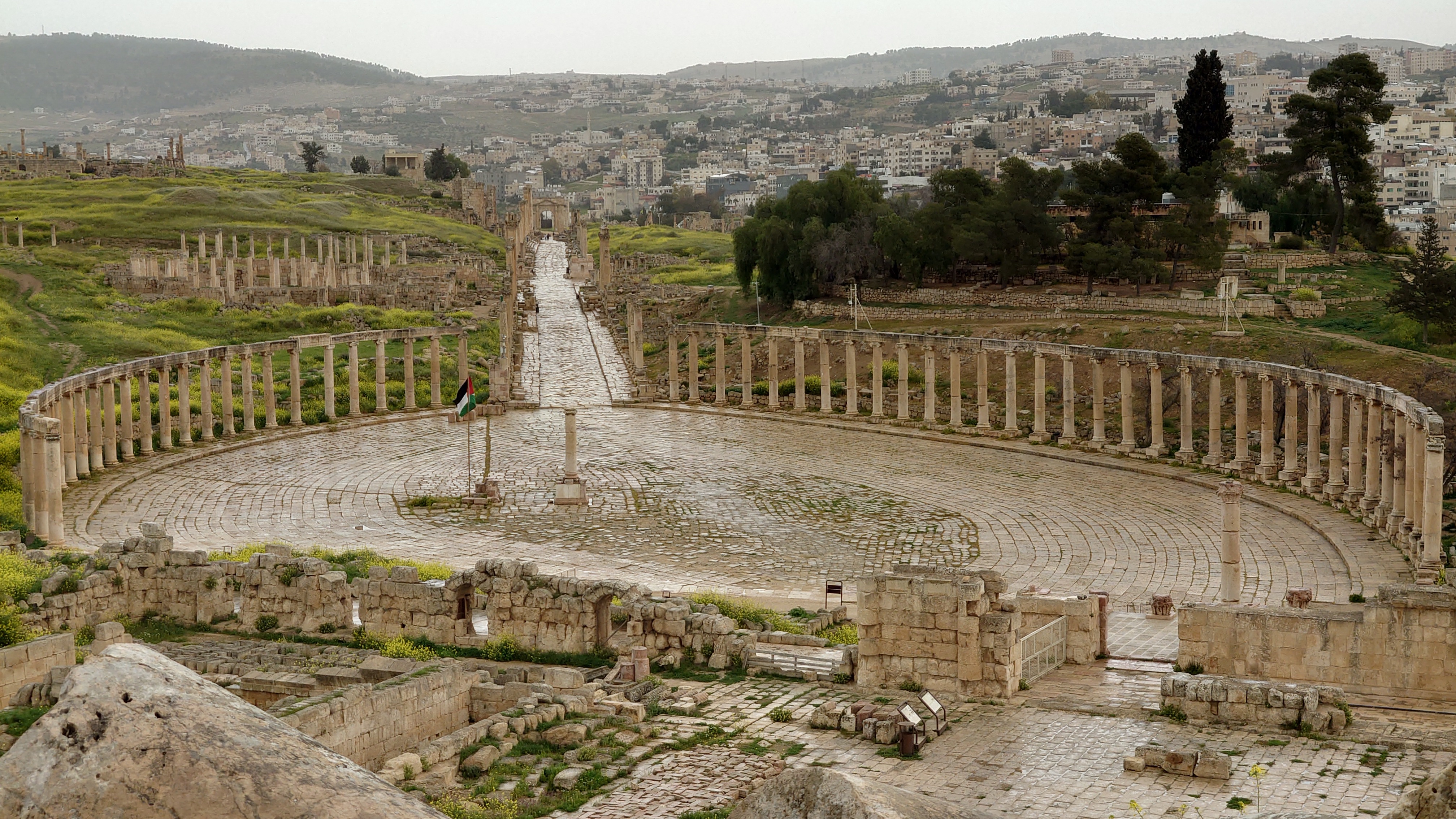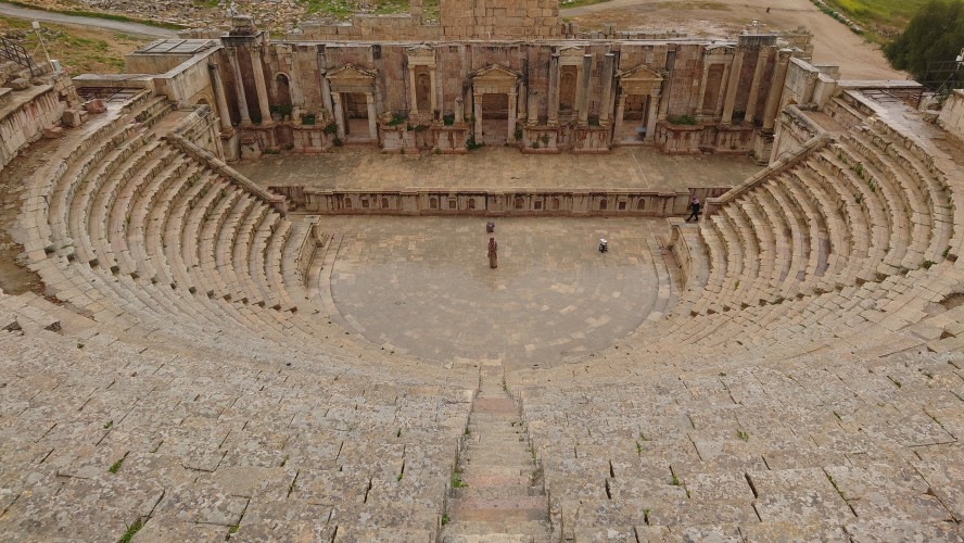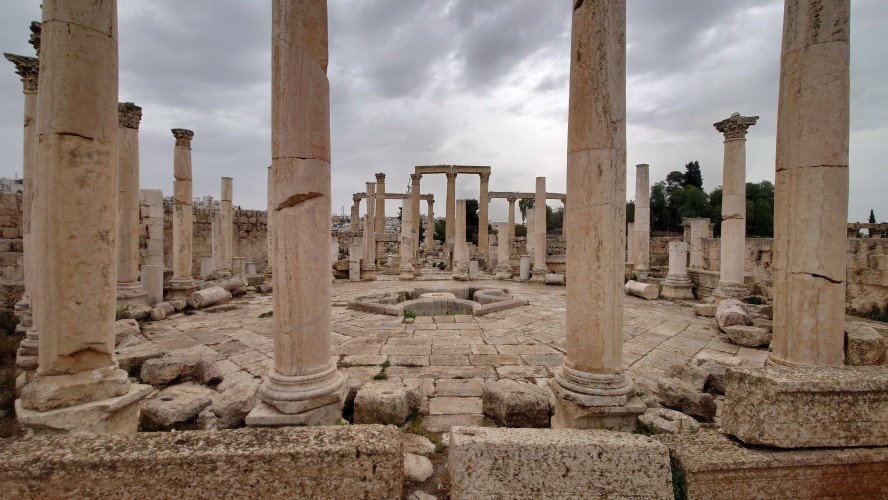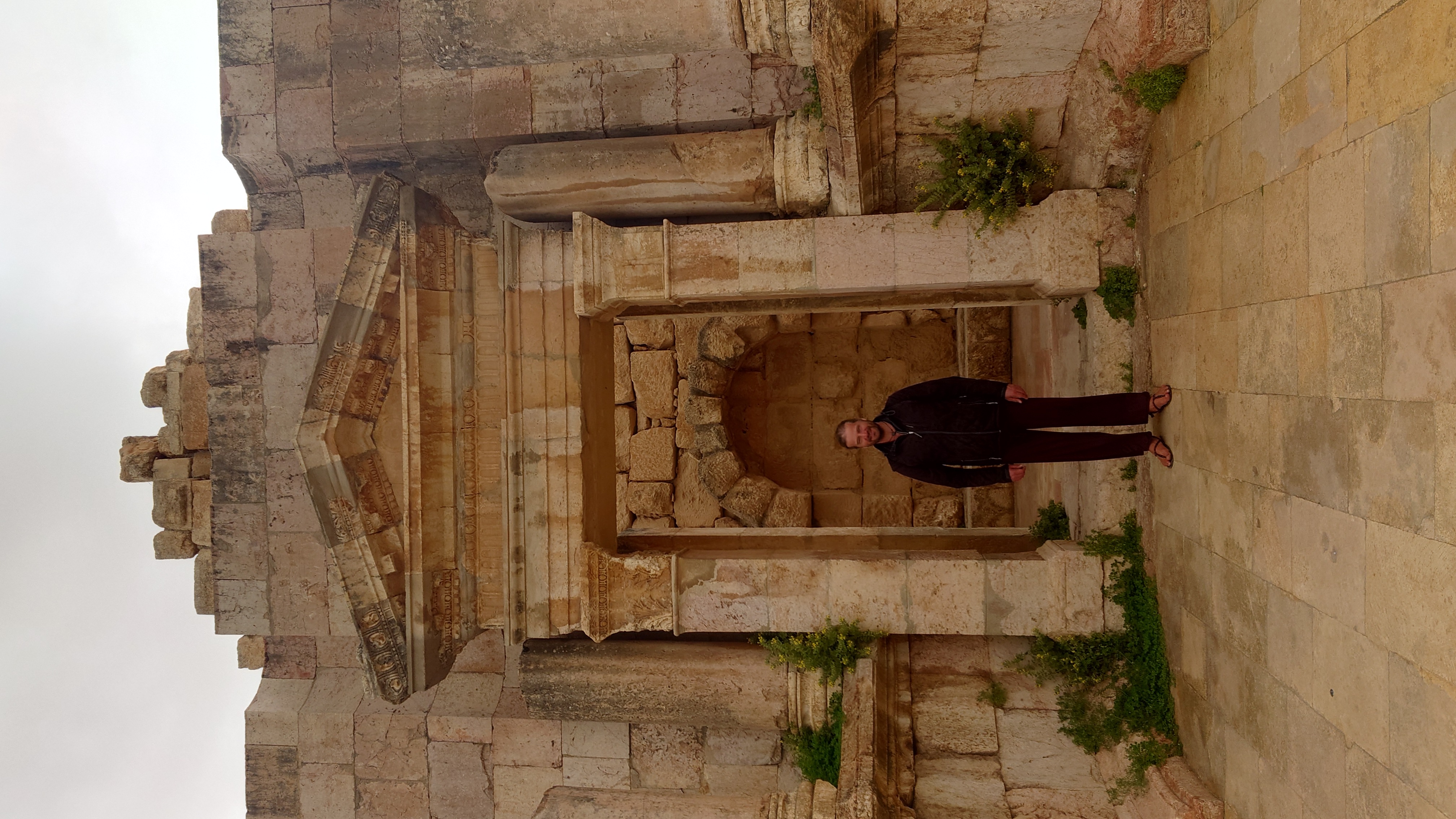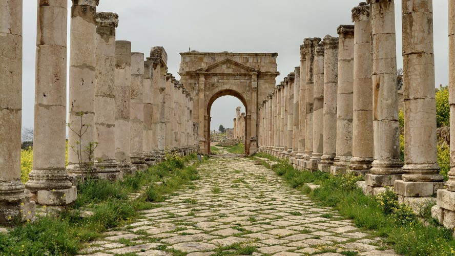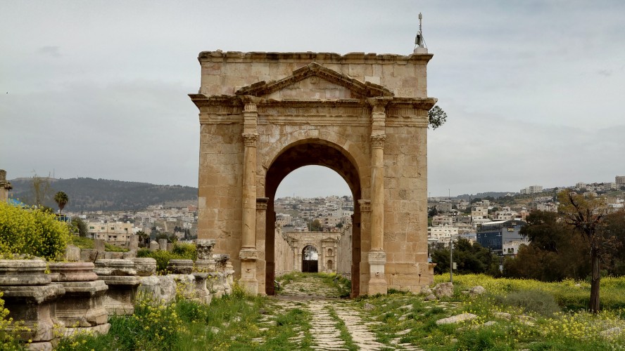 Jerash ist eine mittelgroße Stadt, die sich 40 Kilometer nördlich von Amman ich um eine archäologische Stätte herum erstreckt. Es ist nach Petra die am zweithäufigsten besuchte Stätte Jordaniens. Das heißt zur Zeit auch hier nichts. Ich bin morgens um 10 Uhr alleine auf dem Gelände und muss im Eingangsbereich ebenfalls einen Spießrutenlauf durch die immer gleichartigen Läden machen. Eins muss ich feststellen: die Leute haben es perfektioniert, mich in eine Leistungsfalle zu bringen. Es wirkt, als helfen sie dir, bis du merkst, dass die Hilfe gar nicht enden will. Schließlich kommt eine verschüchtert gespielte Aufforderung etwas zu geben. Selfie machen lassen artet zur Fotosession aus. "10 JD is okay." Leck mich. Ich lasse es drauf ankommen und gebe nichts. Es fing damit an, dass er nur ganz kurz mein Handy haben wollte, um mir etwas zu zeigen. Und dann stehe ich da wie blöde und die Erkenntnis wächst, dass ich geködert wurde für vermeintlich professionelle Fotos. Das mache ich nicht mit. Das wollte ich nicht. Er kriegt nichts, ist sauer und geht weg. Aber das Gefühl in mir ist natürlich schlecht und ich wurde gut getriggert.