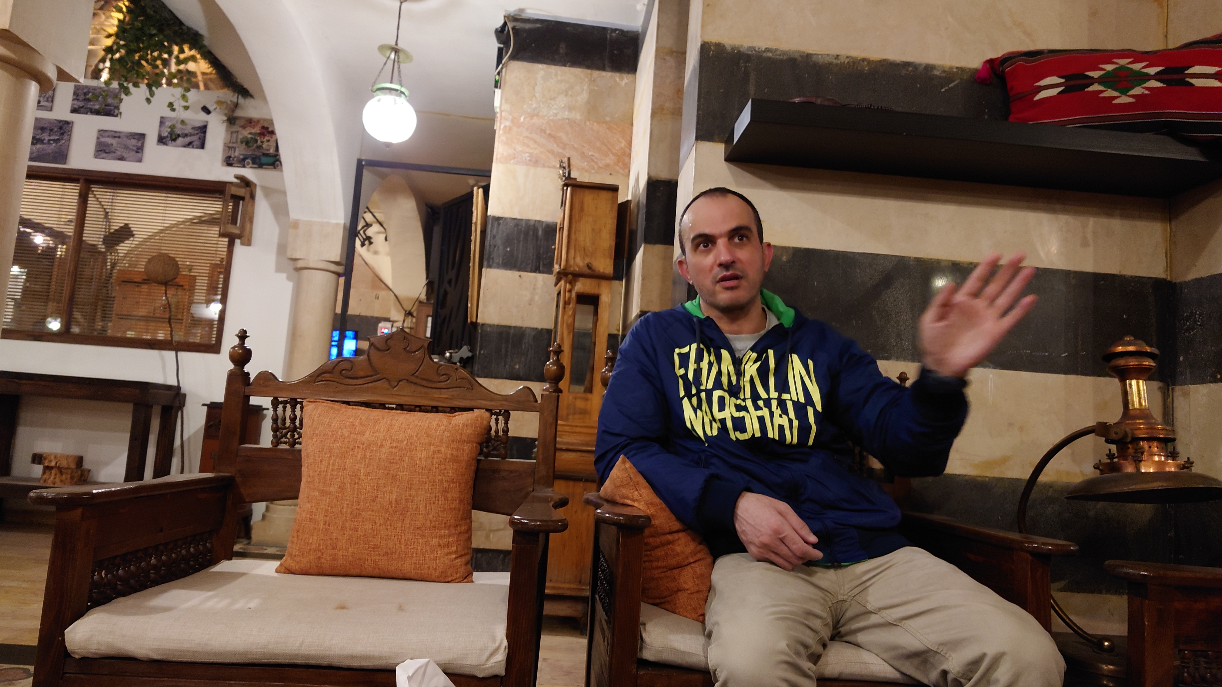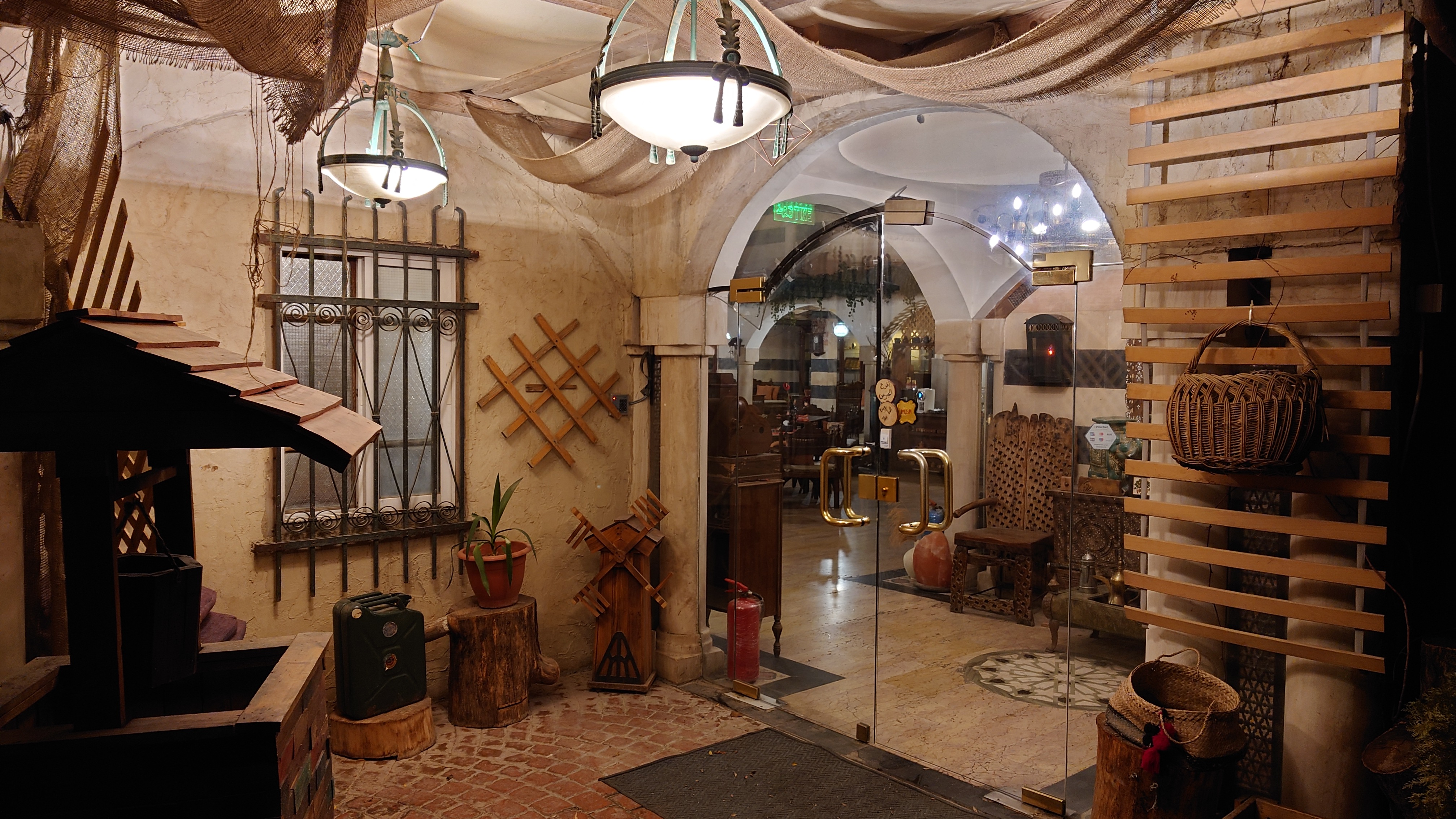 Mir ist nach Wärme und in unmittelbarer Nähe der Rainbow Lane soll es ein traditionelles türkisches Bad geben. Und tatsächlich. In einer Nebenstraße zeigt sich ein versteckter Eingang. Es ist das älteste Bad Ammans. Seit über 40 Jahren gehen vor allem Einheimische hierhin. Aber es ist nicht ganz das, was ich erwarte, wenn ich in die Sauna möchte. Zunächst bekomme ich eine Menükarte, bei der ich ein Paket buchen kann. Dann werde ich von einem Guide die ganze Zeit begleitet. Er schickt mich in die Umkleide, gibt mir eine Einmalhose. Weiter geht's in den Baderaum im Stile einer Crypta. Dort soll ich mich in ein heißes Bad setzen und bekomme Jasmintee gereicht. 15 Minuten später werde ich hinaus gebeten, um ins Dampfbad zu gehen. Ein zweiter Mann wird etwa 5 Minuten später hineingeschickt. Wir sind etwas irritiert über die Führung, aber das scheint hier klassisches Vorgehen zu sein. Wir kommen ins Gespräch. Er heißt Fadi, ist gebürtiger Jordanier, lebt aber zum Arbeiten in Dubai und ist gerade auf Familienbesuch. Die Eltern machen sich wegen des Kriega große Sorgen um ihn. Er solle doch ein Geschäft hier in Jordanien führen, nicht mehr drüben. Bevor wir weiterreden können, werde ich als nächstes in die Sauna gebeten. Dann sitze ich da. 5 Minuten später kommt Fadi nach. Er liebt Jordanien und würde gerne zurück kommen, sagt er. Wer weiß, wie lange der Krieg noch dauern wird. Alles deutet auf den befürchteten Flächenbrand hin.