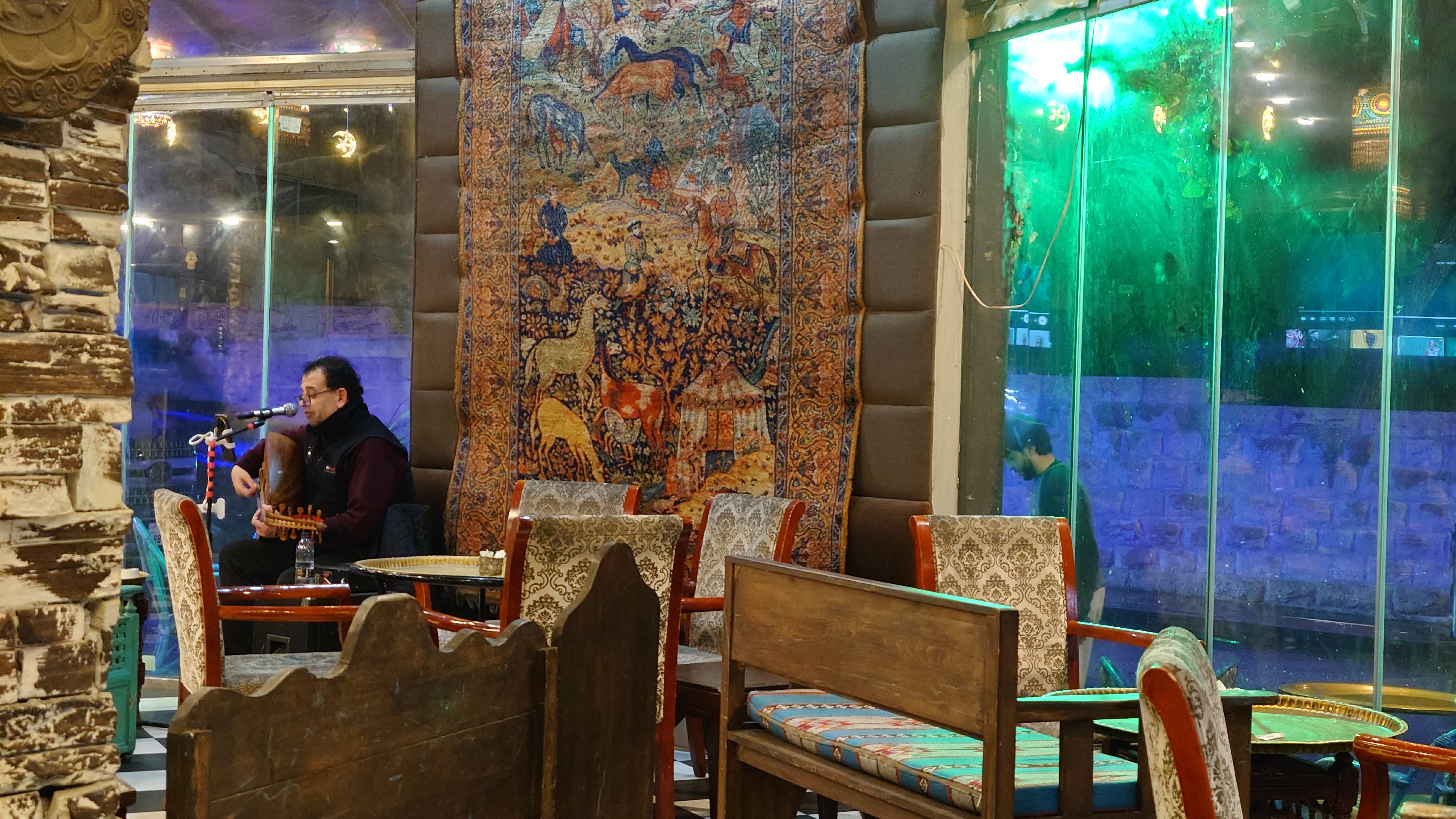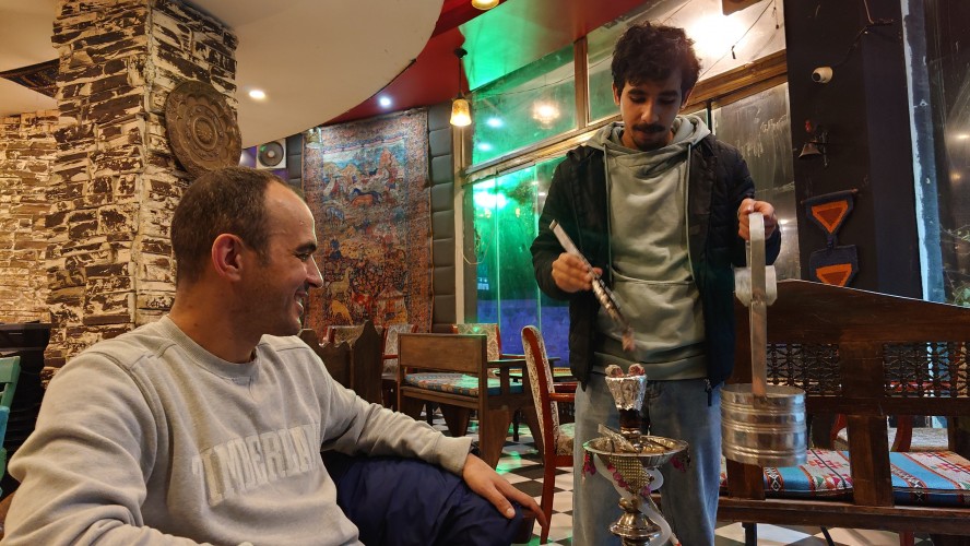 Wir beide verstehen uns ziemlich gut. Wir sind im selben Alter, er liebt wandern und war gerade in Nepal unterwegs, an außerdem hat er exakt den selben Studiengang wie ich studiert: "IT-Management and Information Systems". Selbst Paderborn ist ihm ein Begriff, wegen Diebold Nixdorf. Beruflich ist er zweigleisig unterwegs. Zum einen in seinem studierten Jobs, zum anderen betreibt er Tabakläden. Wir beschließen den Tag in einer Shisha Bar ausklingen zu lassen. Er mit Shisha, ich mit Minzsmoothie, dazu arabische Volkslieder, die ein Musiker extra für uns anstimmt. Wir sind die einzigen Gäste um die Zeit. Wenn man in Jordanien als junger Künstler ernst genommen werden will, muss man erstmal mit ägyptischen Akzent singen lernen, sagt er. Dann hat man im arabischen Raum eine Chance. Ich höre nur einen Haufen Frasierungen und wenig Melodie. Er kennt es nicht anders. Er hat heute nichts mehr zu tun und so quatschen wir, bis die Bar schließlich um 0 Uhr dicht macht. Und er bringt mir bei welches Trinkgeld eigentlich so angemessen ist, aber auch wie schwierig es ist, abseits der gängigen Norm in Jordanien zu leben, gerade auf dem Land. Draußen donnert es nach dem langen Regen. Und dieses Mal ist es wirklich Blitz und Donner. Er hat gerade das Auto seines Bruders und fährt mich sogar noch zurück zum Hotel. Eine tolle,. unerwartete Erfahrung, der ganze Abend.