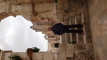 Hmmm... wie wohl Buderus-Gullideckel in 2000 Jahren aussehen werden, frage ich mich. Es gibt sogar zwei Theater und das Herzstück, ein ovaler mit Säulen umrahmter Platz. Im Süstheater höre ich Dudelsackmusik und Getrommel und es zieht meine Aufmerksamkeit auf sich. In der Mitte des Theaters liegt ein Fell und eine auffällige, weiße Kiste. Was ist das?..... Ich hätte mal nicht neugierig sein sollen. Kaum bin ich im Zentrum des Theaters bei der Kiste, kommen wie auf Knopfdruck aus einem zweiten Eingang zwei Tourifänger mit besagter Trommel und Instrument heraus und fangen an "Just for me" zu spielen. Sie fixieren mich regelrecht. Sie spielen irgendwelche Dudelsackgassenhauer und zeigen fortlaufend auf eine weiße Box, auf der "Tips" steht. "Welcome! Only 10 JD, my german friend!" Ich könnte kotzen. Das merkt auch der Himmel und schickt unvermittelt einen Platzregen. Die beiden flüchten und ich kann durch einen Hinterausgang entkommen in Richtung Artemistempel. 12 beeindruckende Säulen stehen dort. In einer Nische hockt ein Edelsteinverkäufer in einem kleinen Zelt und bittet mich herein. Ich will nichts!, sage ich bestimmt. Das macht nichts, antwortet er. "Not a great job here in war Times" sagt er und lacht. Er verkauft mir ja wirklich nichts. Ich sitze 10 Minuten unter seiner Plane und spiele mit seinen Halbedelsteinen herum. Er lässt mich in Ruhe. Tatsächlich fesselt etwas meine Aufmerksamkeit: eine Mondsteinkugel. "What you like" sagt er, als ich frage, was sie kosten soll. Ich bin schockverliebt und muss sie haben und drücke dem Kerl 10 JD in die Hand. Er freut sich. Und ich freue mich. Dann zeigt er mir noch, dass die Säulen am Tempel permanent in Bewegung sind. Er steckt einen Löffel zwischen die Fugen, der sich langsam auf und nieder bewegt. Selbst wenn man einen Finger in die Ritze steckt, fühlt man es. "Have no fear, I am working here for 20 years now!" sagt er.