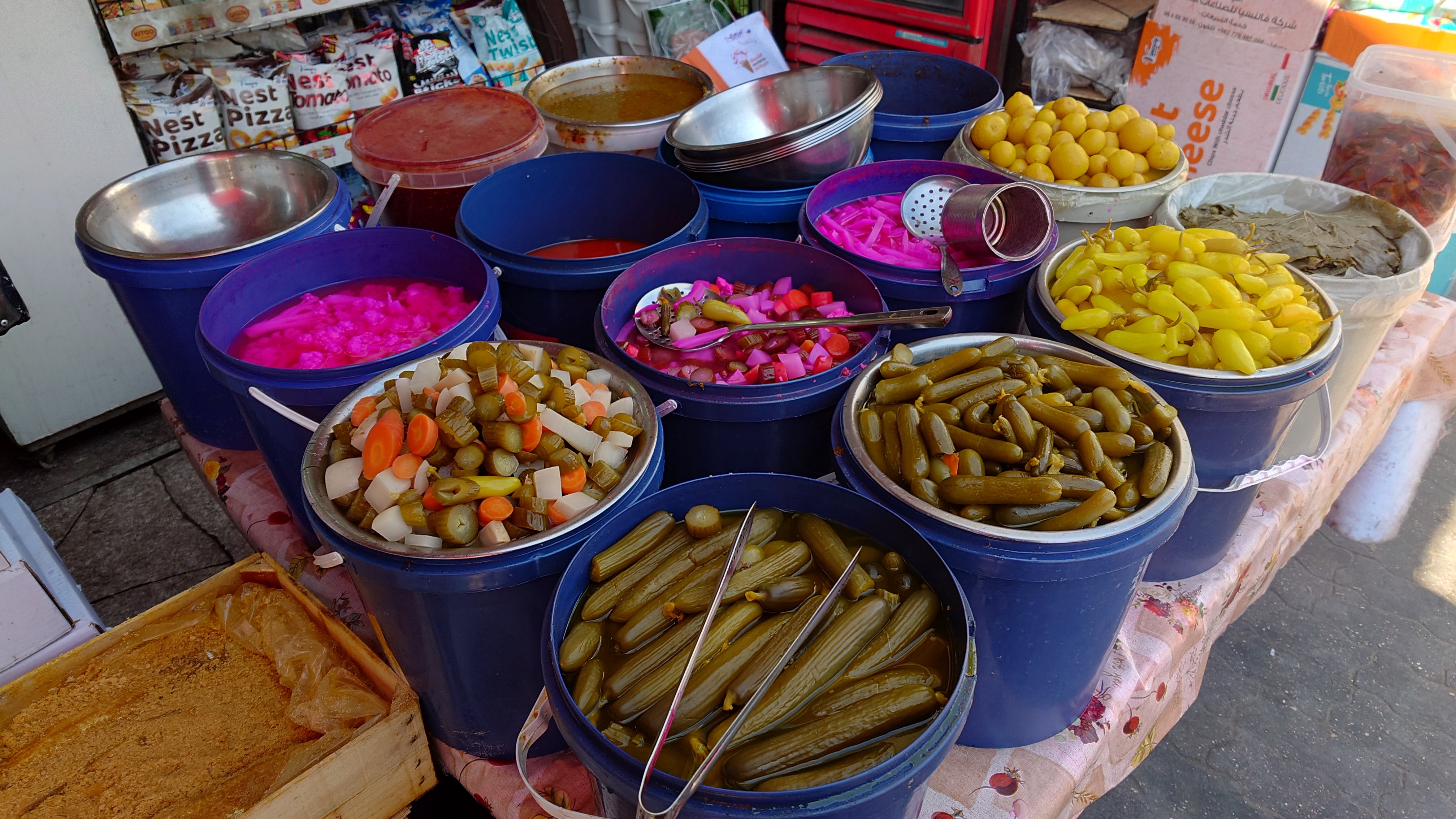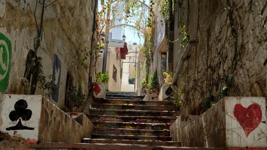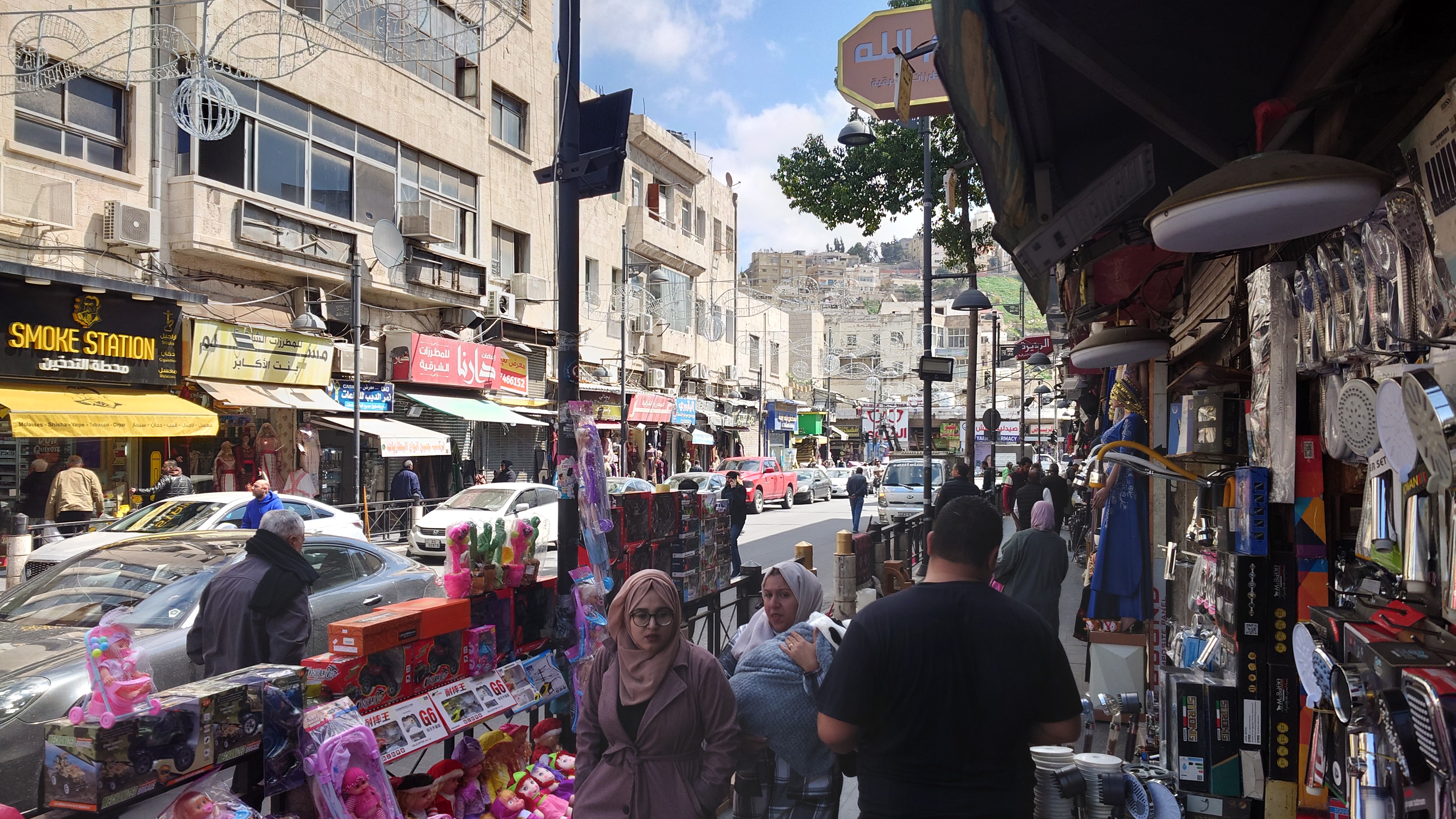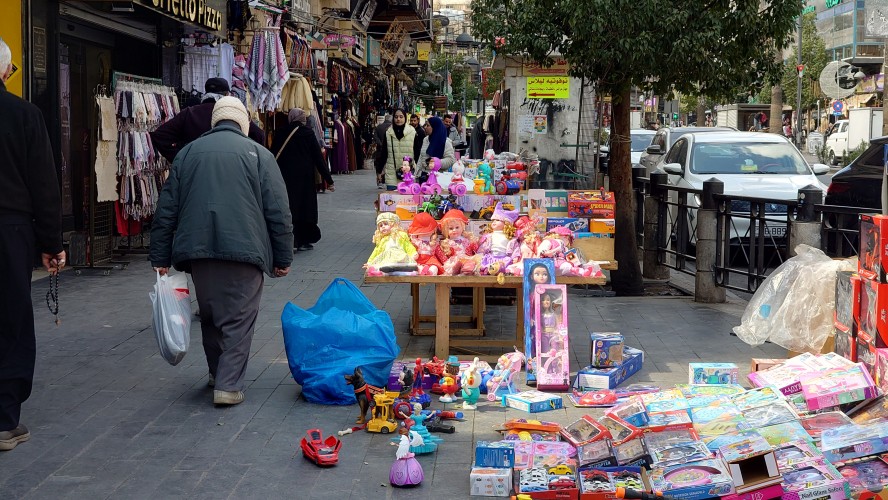 Weiter geht es für mich hinunter in die Altstadt. In der jordanischen Zentralbank gibt es ein Währungsmuseum. Ich schaue auch da schnell mal rein. Dann bin ich anscheinend in einer Art Marktstraße angelangt, in der alles verkauft wird. Nur Einzelhändler, alle spezialisiert. Es erinnert mich ein wenig an As Salt, nur deutlich alltäglicher. Ich merke, wie langweilig dagegen unser westliches Geschäftstreiben geworden ist. Hier wird zwar auch umgesetzt, aber man kommt vor allem auch direkt miteinander in Kontakt. Ich ertappe mich nur wie ich denke, dass das alles auch bei AliExpress bestellbar ist, was hier als Qualität aber vor allem auch Plagiate angeboten wird. Duma, Adiboss, Kalvi Klevin. Am Ende der Basarstraße taucht das Jordanische Nationalmuseum auf. Na wenn es schonmal da ist, gehe ich hinein. Was ich erfahre, habe ich aber schon in den vielen anderen Museen und Stätten im Land erfahren. Außer die Funde der Steinzeit, die waren neu für mich. Auch wurden wieder Frauengewänder ausgestellt, bei denen erkennbar wurde, dass im Grunde jede Stadt ihr eigenes Muster hat. Wie ein Mannschaftstrikot. Ein Bauprojekt hat meine Aufmerksamkeit erregt. Jordanien plant tatsächlich, Wasser vom roten Meer ins tote Meer zu leiten, um der weiteren Verlandung des Sees entgegenzuwirken.