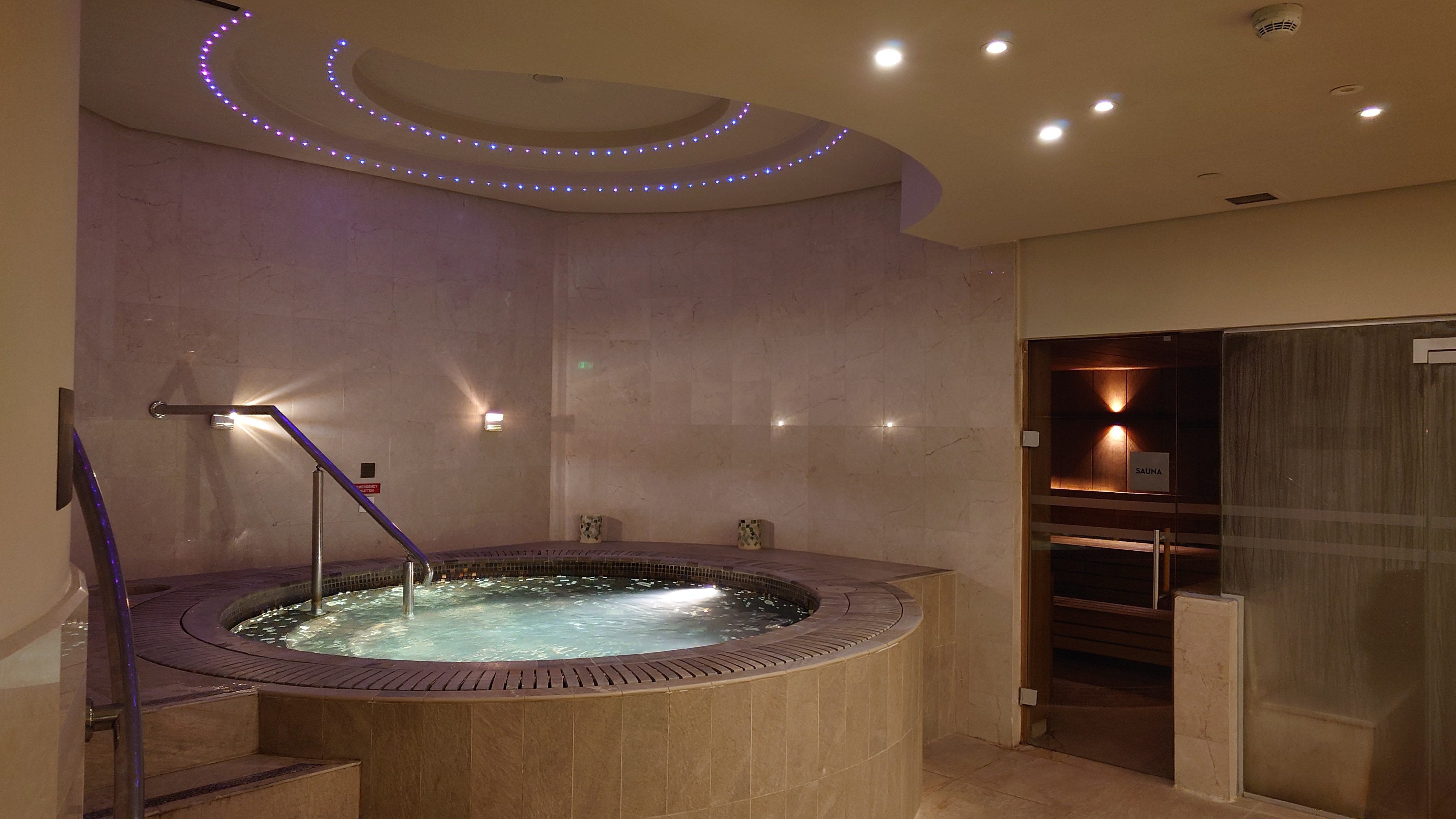 8 Kilometer bin ich schon wieder unterwegs und ich habe das Bedürfnis, mich irgendwo ins Wasser zu begeben. Aber was habe ich für Möglichkeiten? Das Bad gestern war eine Erfahrung, aber nicht, um einfach mal zu entspannen. Ich steuere das Grand Hyatt am 3rd Circle an. Die haben ein Spa. Und wenn ich Glück habe, kann ich vielleicht als Tagesgast hinein. Ich habe Glück. Es kostet 25 JD und dafür bekomme ich eeeeendlich meine heißersehnte Sauna, ein Dampfbad, Blubberpool, Innen- und Außenpool. Und dicke Äpfel! Genau das und nur das will ich jetzt haben. Viele junge Diplomaten, ein paar sogar aus Deutschland, nutzen das Hotel ebenfalls als Fitnessstudio. Hier drin ist eine durch und durch westliche Kukturoase. Ich checke um 16 Uhr ein und beschließe bis Ladenschluss um 22 Uhr hier herumzuhängen und das Ganze nur durch einen Gang zur Crazy Casa zum Essen nach Sonnenuntergang zu unterbrechen. Das Buffet war einfach zu gut. Endlich werde ich mal so richtig sauber. Eigentlich eine gute Kombi: Butiauehotel für 30, Spa für 25 im Hyatt. Das muss ich mir merken.
