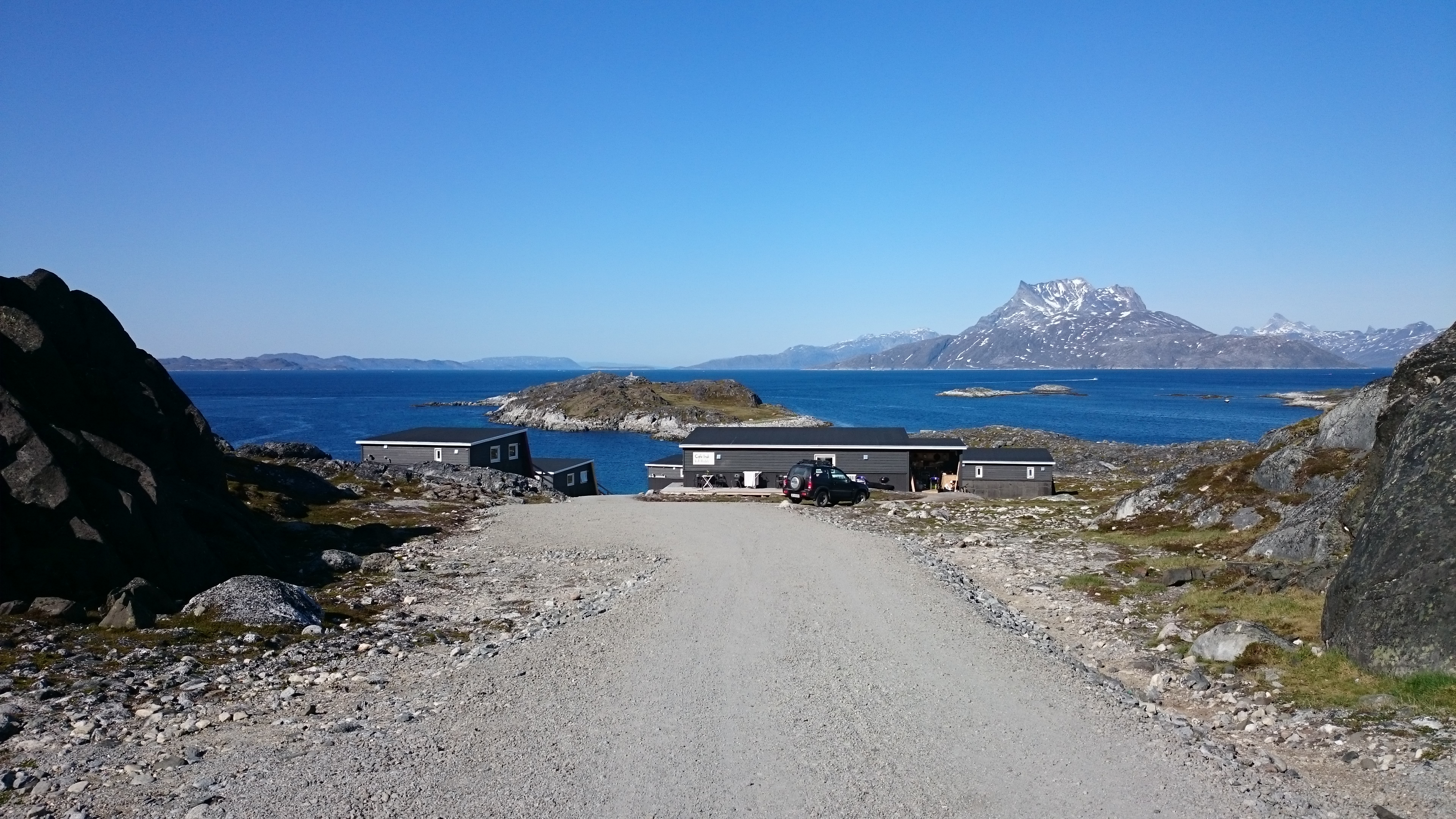 Liisi, die Betreiberin, mit der ich im Winter gemailt hatte, hat sich letztes Jahr gedacht, es wäre eine gute Idee für die einheimischen ein schönes Ausspanndomizil zu errichten, denn das gäbe es hier gar nicht. Es besteht aus 4 Hütten auf einer Klippe mit einer vorgelagerten Insel und Strand und einem kleinen Café, in dem sie Fisch, Fischsuppe und Moschusochsenburger anbietet. Es ist herrlich und nachdem ich noch kurz im Supermarkt in der Innenstadt war auch tatsächlich eine echte Wohlfühloase in Nuuk. Die Innenstadt selbst könnte durchaus eine mittelgroße Stadt in Dänemark sein. Aber auch hier stehen noch die Industrialisierungssünden der 60er.