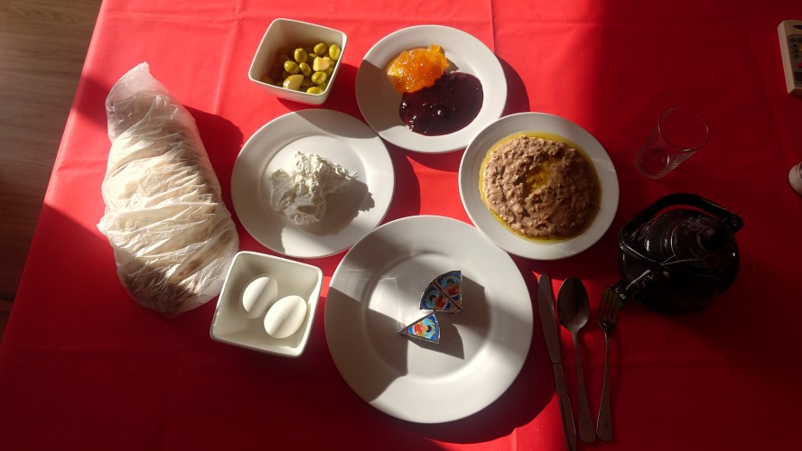Ein Zimmer für 20 JD, Wanderstempel und wieder das ganze Hotel für mich alleine. Glück für mich. Aber wie lange halten die Leute das durch mit all den Konflikten rings herum.