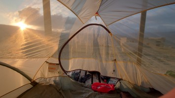 Um 6:30 Uhr geht nichts mehr. Ich muss mich bewegen und warm kriegen. Also raus. Es ist bewölkt, das erste Mal. Nicht gut. Ich muss mich viel mehr bewegen. Langsam quält sich auch Sonnenlicht durch die Wolken zu mir und ich packe zusammen.