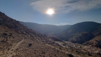 Danach besuche ich das hiesige Visitors Center des Dana Reservats, das diesmal deutlich professioneller geführt ist und auch geöffnet hat. Ich erfahre, dass Wadi Dana eine einzigartige Biosphäre ist mit vier unterschiedlichen Zonen und hunderten Arten, von denen drei sogar endemisch sind. Boah ich würde da so gerne rein. Ein Blick auf den Trail zeigt, dass die morgige Strecke tatsächlich lang und 1000 Meter abwärts hindurchführt. Genial. Eigentlich müsste ich eine Gebühr dafür zahlen. Weil ich aber den Trailpass habe, darf ich einfach so hinein.