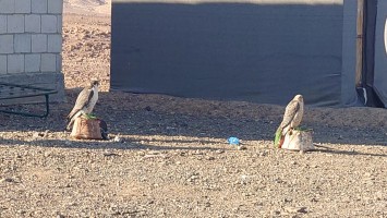 Wir verabschieden uns und ich mache mich auf den Weg. Die Jordanier kommen gerade auch aus ihren Würfeln und drapieren ihre Vögel. Scheint wohl ein Volkssport zu sein.