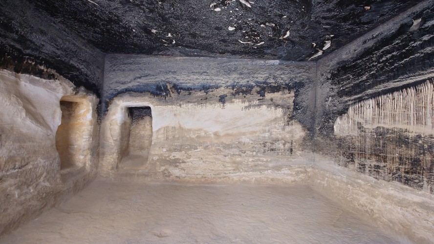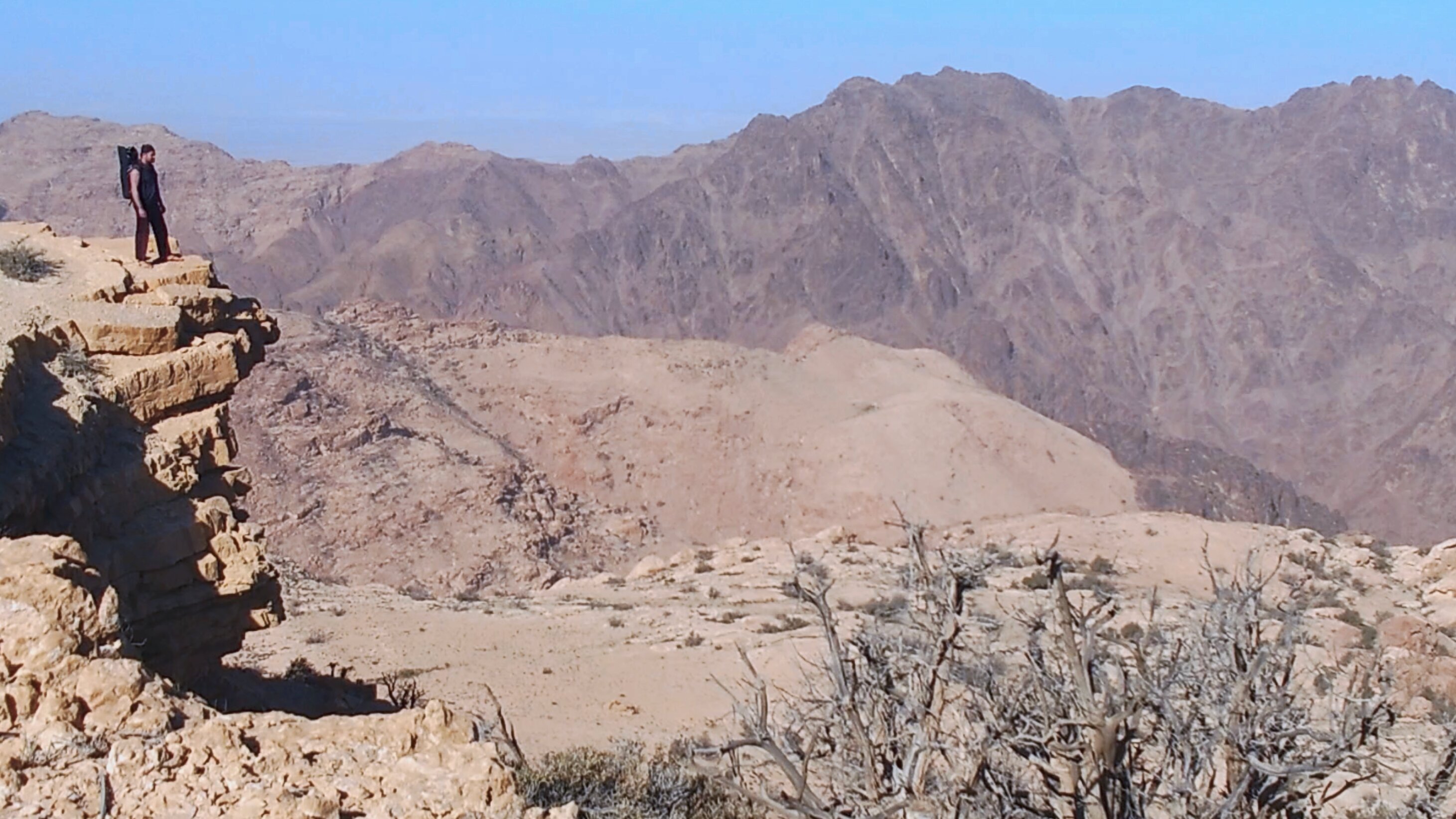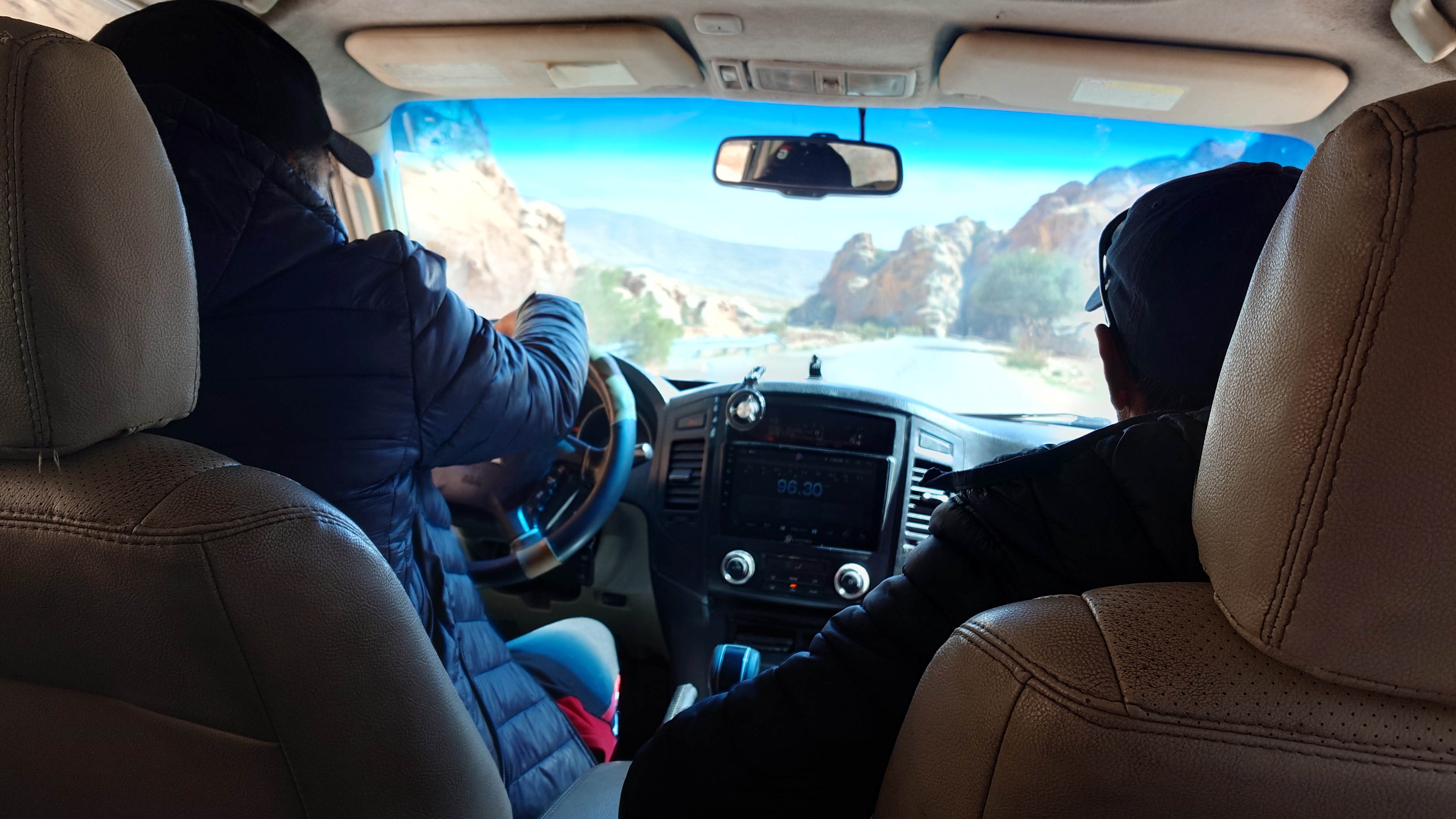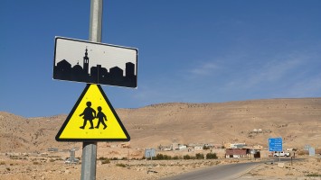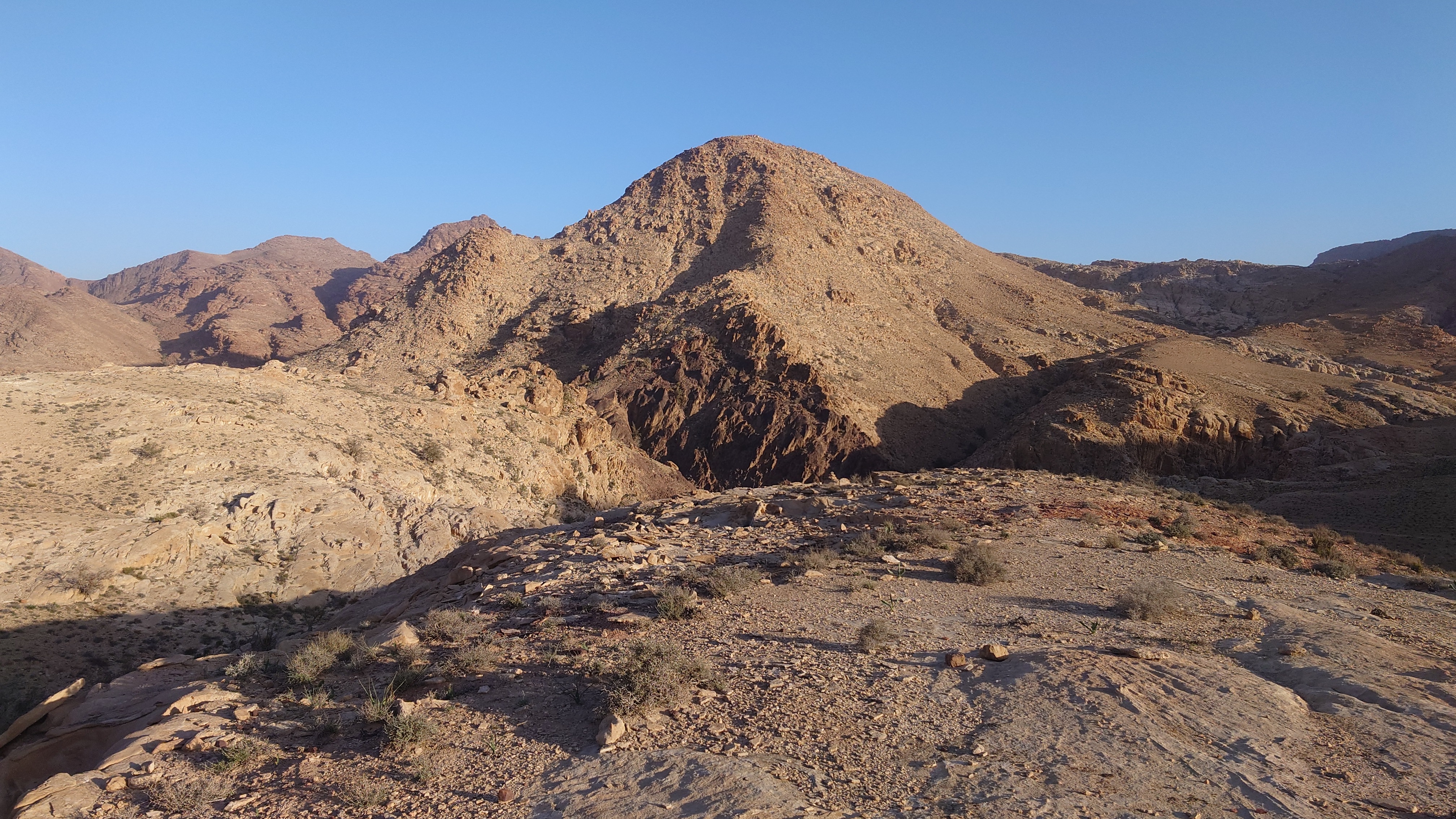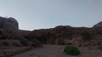 Die Piste führt schließlich zurück in die Zivilisation zu einer Straße, die zu meinem Zielort Al Beyda führt. Eine Infotafel am Eingang der Piste verrät, dass ich bereits auf einem Wandernetzwerk im Einzugsgebiet von Petra unterwegs bin. Mein Ziel ist nah. Aber erst einmal 8 Kilometer Straße. Na ob da nicht vielleicht ein... 30 Minuten bin ich unterwegs, bis schließlich ein... natürlich will ich mitfahren. Wir fahren die restlichen 5 Kilometer hinab nach Al Beyda. Von dort aus ist es nicht mehr weit bis zum Etappenziel mit dem Namen Little Petra. Die Umgebung hier ist eindeutig touristisch geprägt. Viele Camps: Beduin Camp, The Rock Camp, Little Petra Camp,.Petra View Lodge... nur eines fehlt komplett: die Touristen. Ein großer Parkplatz vor dem Eingang in den sogenannten "Vorort" von Petra zeugt davon, dass hier viele Autos und Busse erwartet werden würden, wäre da nicht dieses Raketenproblem über unseren Köpfen. Shops reihen sich aneinander mit allerlei Tourikram,.in denen Frauen versuchen etwas zu verkaufen an Menschen, die auf absehbare Zeit nicht kommen werden. Ein paar Verkäufer versuchen fast flehend eine Unterkunft an mich zu vermitteln. Der Eintritt in den Felsenstadt-Vorort ist aber frei und ich bekomme einen ersten Eindruck davon, was mich wohl morgen erwarten wird. Tempel,.Behausungen, Zisternen, Bewässerungsanlagen und Treppen sind hier vor 2000 Jahren in den Fels gegraben worden. Niemenad ist da. Nur drei Ziegen huschen einmal rein, machen ein kräftig echondes "Määäh" und schwirren wieder davon. Die Location wirkt durch das gänzliche Fehlen von Leuten natürlich umso anmutiger. Alles meins. Wenn es nicht mit solch tragischen Unständen verbunden wäre, wäre es wohl der ultimative Traum eines jeden Besuchers, diese Stätten für sich allein zu haben. Aber auch hier häulen, während ich langsam von Bauwerk zu Bauwerk schlenderte, zwei Mal die Fliegersirenen los. Es rummst zweimal dumpf aus der Ferne und echot durchs das Kerbtal der Felsenstadt.