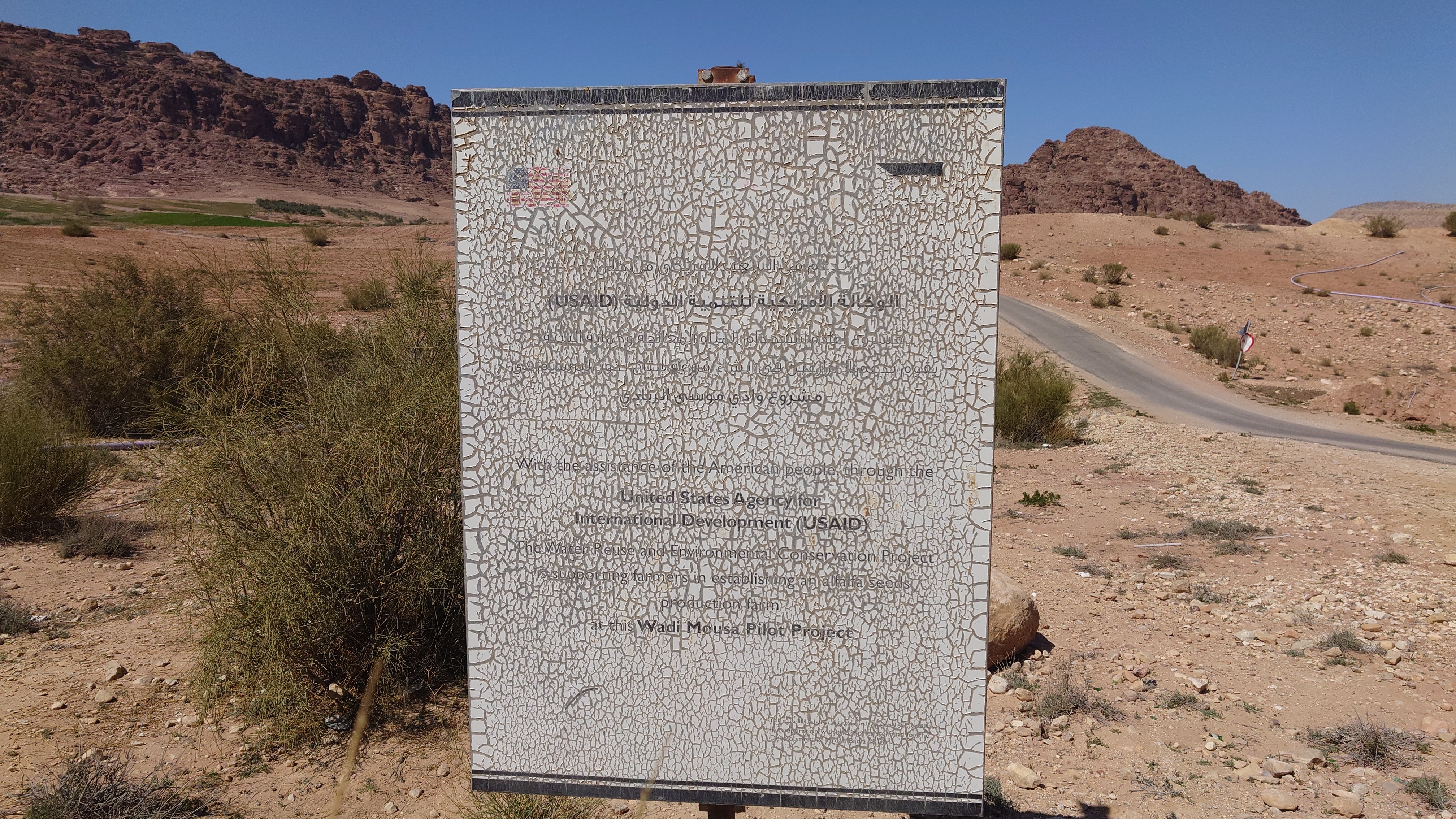 Etwa hundert Meter weiter steht schließlich ein Beduinenzelt und eine Piste weiter hinab in einangezogenes Tal beginnt, in dem Landwirtschaft betrieben wird. Wegesrand blüht ein Strauch mit weißen Blüten. Sie riechen irgendwie nach Reis, finde ich. Nur einen Menschen zum Danke sagen, finde hier hier nicht.