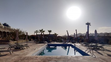 Erstmal in den Pool, während der Rezeptionist meine Behausung vorbereitet. Das dauert etwas, mit Besuch hat er nicht mehr gerechnet. Das Wasser ist so herrlich kalt. Meine Geschwollenen Glieder schrumpfen wieder auf Normalmaß zurück und vor allem: ich werde wieder sauber. Auch meine Spähre hat eine Dusche, die wie eine Dusche funktioniert mit richtig normal viel Wasser aus der Brause!! Das hatte ich seit meinem Anfangshotel in Ma'in nicht mehr.
