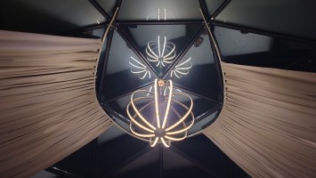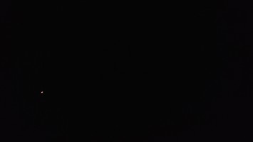 Es wird schnell dunkel. Die Sphäre eröffnst den Blick auf den Sternenhimmel und damit leider auch auf die Raketenflugbahn. Sehr schnelle, dunkelgelbe Punkte sind kein gutes Zeichen. Das sind die Antriebe der Raketen.
