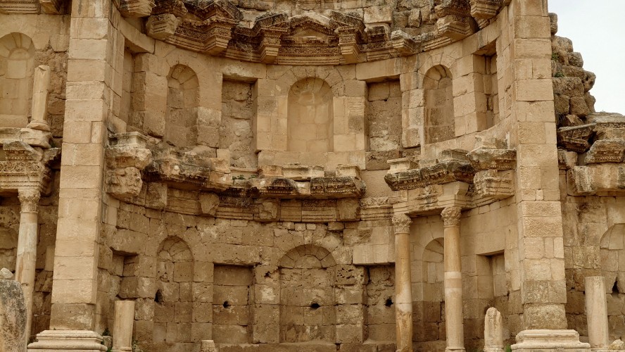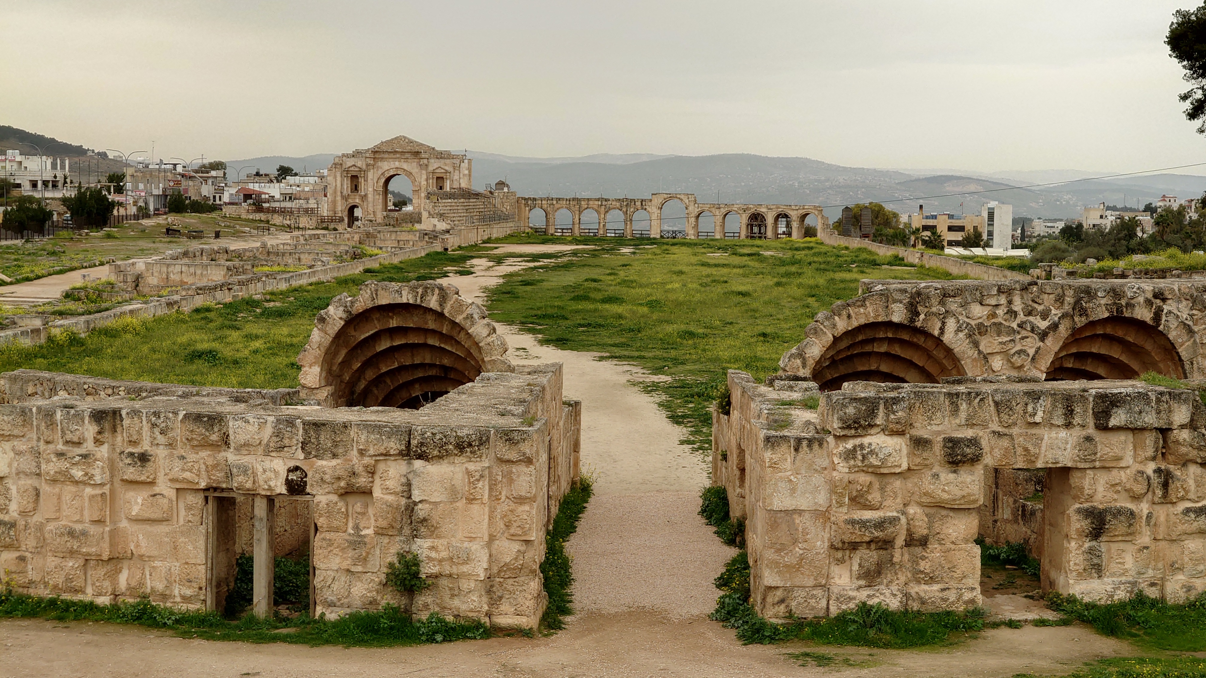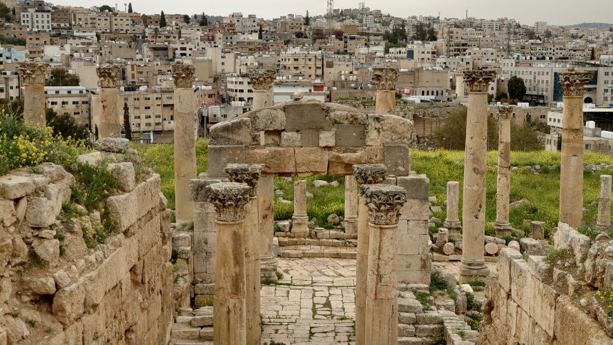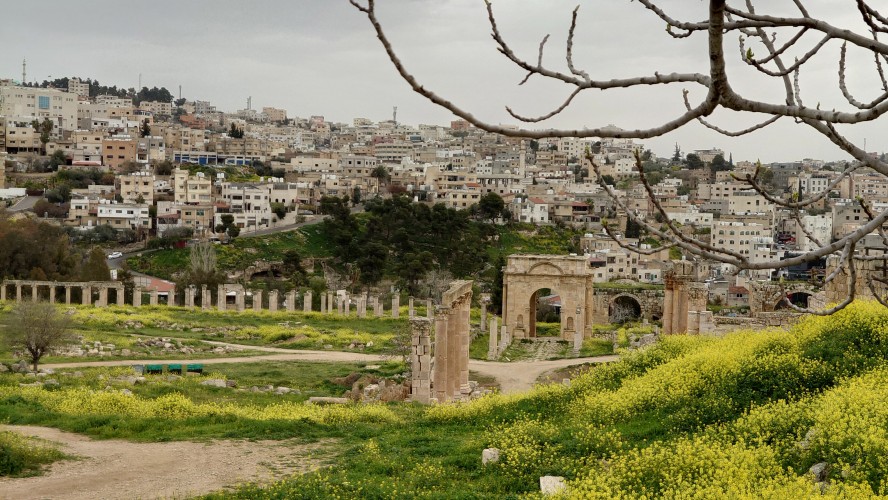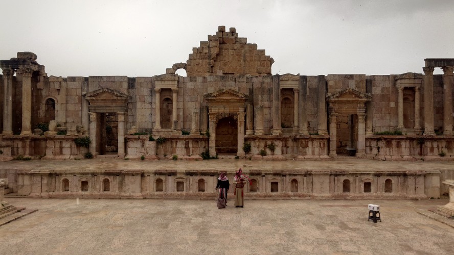 Jerash ist eine mittelgroße Stadt, die sich 40 Kilometer nördlich von Amman ich um eine archäologische Stätte herum erstreckt. Es ist nach Petra die am zweithäufigsten besuchte Stätte Jordaniens. Das heißt zur Zeit auch hier nichts. Ich bin morgens um 10 Uhr alleine auf dem Gelände und muss im Eingangsbereich ebenfalls einen Spießrutenlauf durch die immer gleichartigen Läden machen. Eins muss ich feststellen: die Leute haben es perfektioniert, mich in eine Leistungsfalle zu bringen. Es wirkt, als helfen sie dir, bis du merkst, dass die Hilfe gar nicht enden will. Schließlich kommt eine verschüchtert gespielte Aufforderung etwas zu geben. Selfie machen lassen artet zur Fotosession aus. "10 JD is okay." Leck mich. Ich lasse es drauf ankommen und gebe nichts. Es fing damit an, dass er nur ganz kurz mein Handy haben wollte, um mir etwas zu zeigen. Und dann stehe ich da wie blöde und die Erkenntnis wächst, dass ich geködert wurde für vermeintlich professionelle Fotos. Das mache ich nicht mit. Das wollte ich nicht. Er kriegt nichts, ist sauer und geht weg. Aber das Gefühl in mir ist natürlich schlecht und ich wurde gut getriggert.