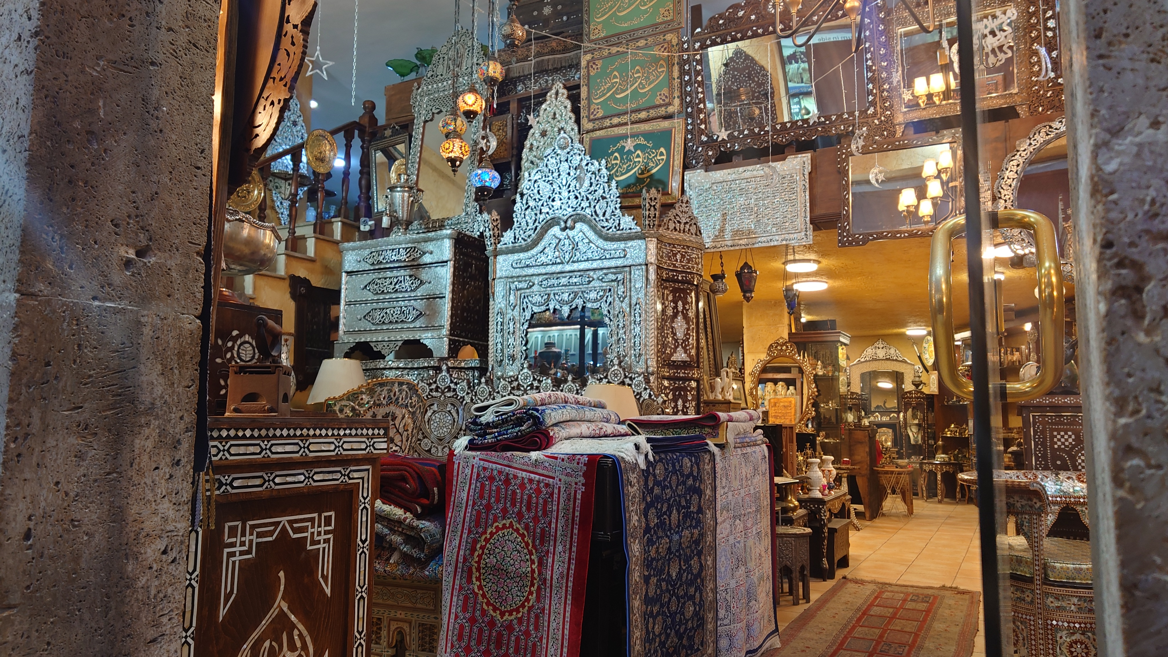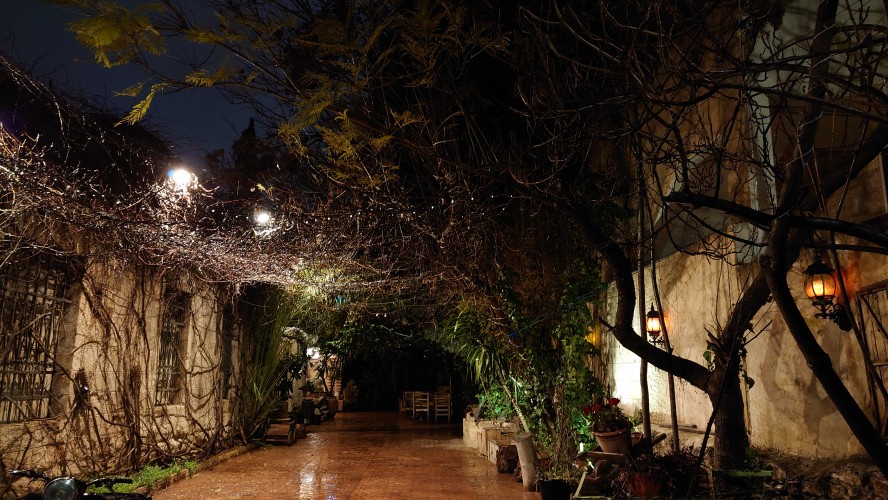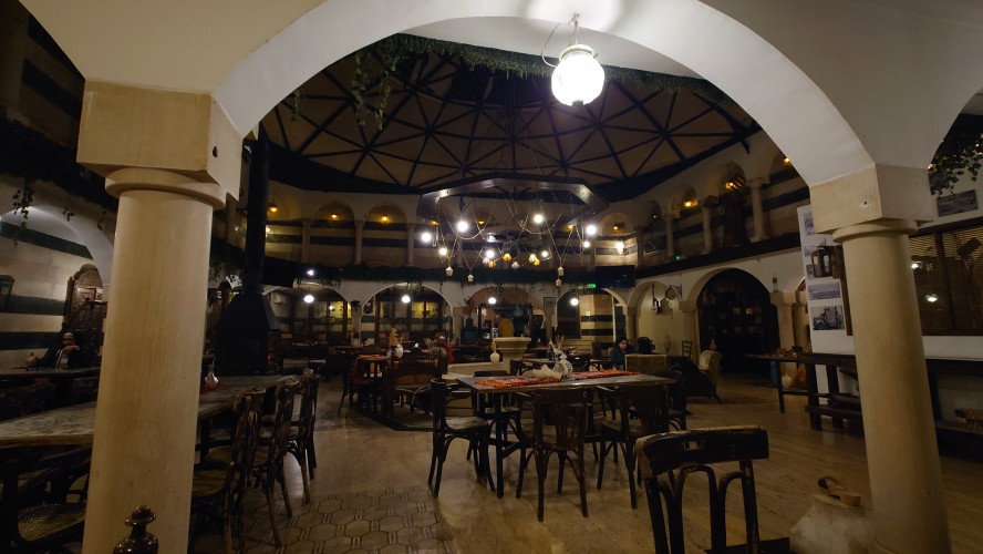 Mir ist nach Wärme und in unmittelbarer Nähe der Rainbow Lane soll es ein traditionelles türkisches Bad geben. Und tatsächlich. In einer Nebenstraße zeigt sich ein versteckter Eingang. Es ist das älteste Bad Ammans. Seit über 40 Jahren gehen vor allem Einheimische hierhin. Aber es ist nicht ganz das, was ich erwarte, wenn ich in die Sauna möchte. Zunächst bekomme ich eine Menükarte, bei der ich ein Paket buchen kann. Dann werde ich von einem Guide die ganze Zeit begleitet. Er schickt mich in die Umkleide, gibt mir eine Einmalhose. Weiter geht's in den Baderaum im Stile einer Crypta. Dort soll ich mich in ein heißes Bad setzen und bekomme Jasmintee gereicht. 15 Minuten später werde ich hinaus gebeten, um ins Dampfbad zu gehen. Ein zweiter Mann wird etwa 5 Minuten später hineingeschickt. Wir sind etwas irritiert über die Führung, aber das scheint hier klassisches Vorgehen zu sein. Wir kommen ins Gespräch. Er heißt Fadi, ist gebürtiger Jordanier, lebt aber zum Arbeiten in Dubai und ist gerade auf Familienbesuch. Die Eltern machen sich wegen des Kriega große Sorgen um ihn. Er solle doch ein Geschäft hier in Jordanien führen, nicht mehr drüben. Bevor wir weiterreden können, werde ich als nächstes in die Sauna gebeten. Dann sitze ich da. 5 Minuten später kommt Fadi nach. Er liebt Jordanien und würde gerne zurück kommen, sagt er. Wer weiß, wie lange der Krieg noch dauern wird. Alles deutet auf den befürchteten Flächenbrand hin.