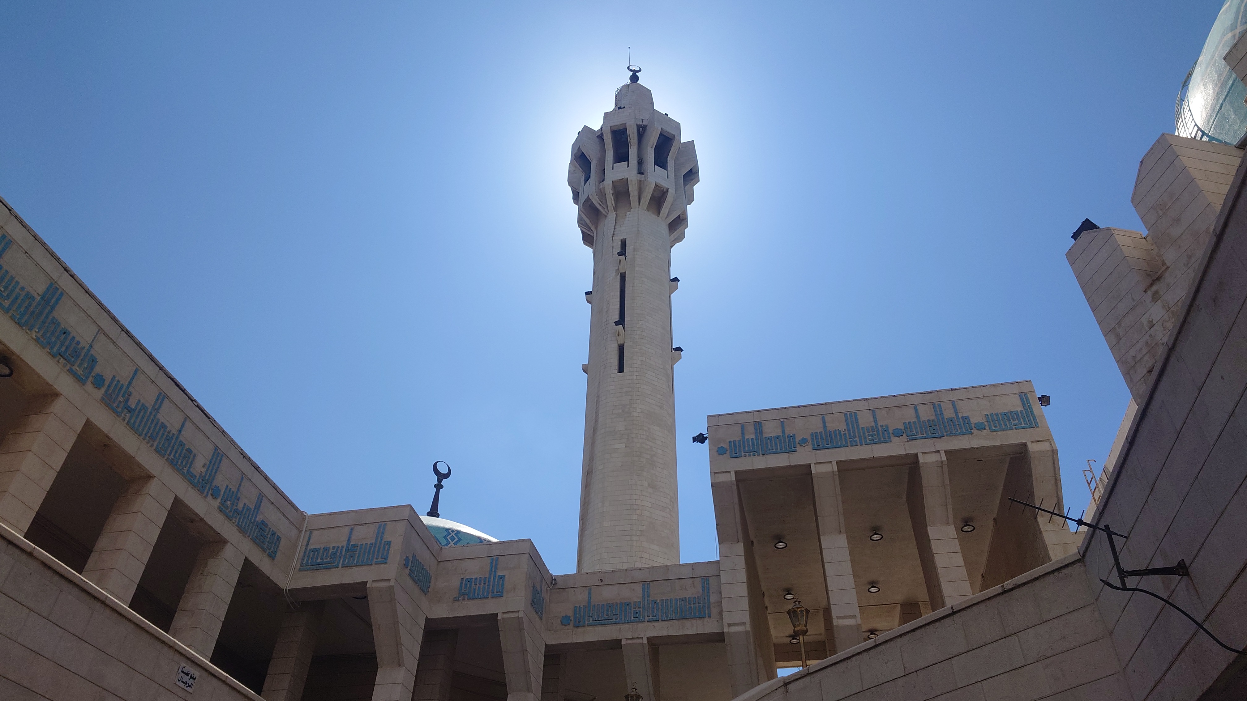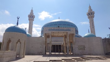 Also raus in den Lärm. Ich merke, dass ich mich immer mehr an die unvollkommene Kulisse der Stadt gewöhne und die schönen und bemerkenswerten Dinge finde. Zuerst fällt mir die große Moschee Ammans auf und ich steuere darauf zu. Sie ist kulturell nicht sonderlich bedeutsam, sondern ein eher moderner, 1989 gebaiter Betonkomplex. Aber ich war noch nie in einer Moschee drin und will mal schauen. 2 JD Eintritt, ich ziehe meine Sandalen aus und ich betrete die größte Moschee Jordaniens. Alles wirkt im Grunde sehr pragmatisch und gelassen. Ein paar Männer sind hier. Manche liegen einfach so herum und schlafen. Andere beten, wiederum andere knien vor einer Lesebank und lesen etwas. Einige unterhalten sich auch. Es hat irgendwie nicht so den Pathos wie in Kirchen. Es hat eher was von einem gewaltigen Wohnzimmer.