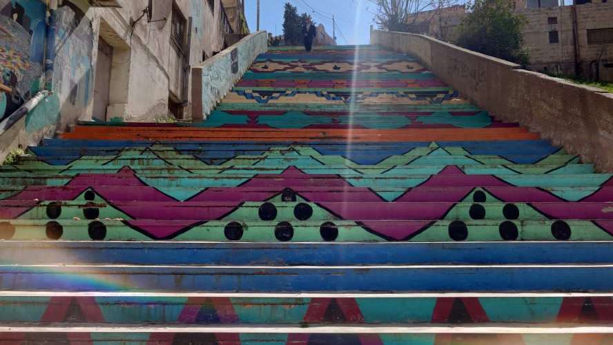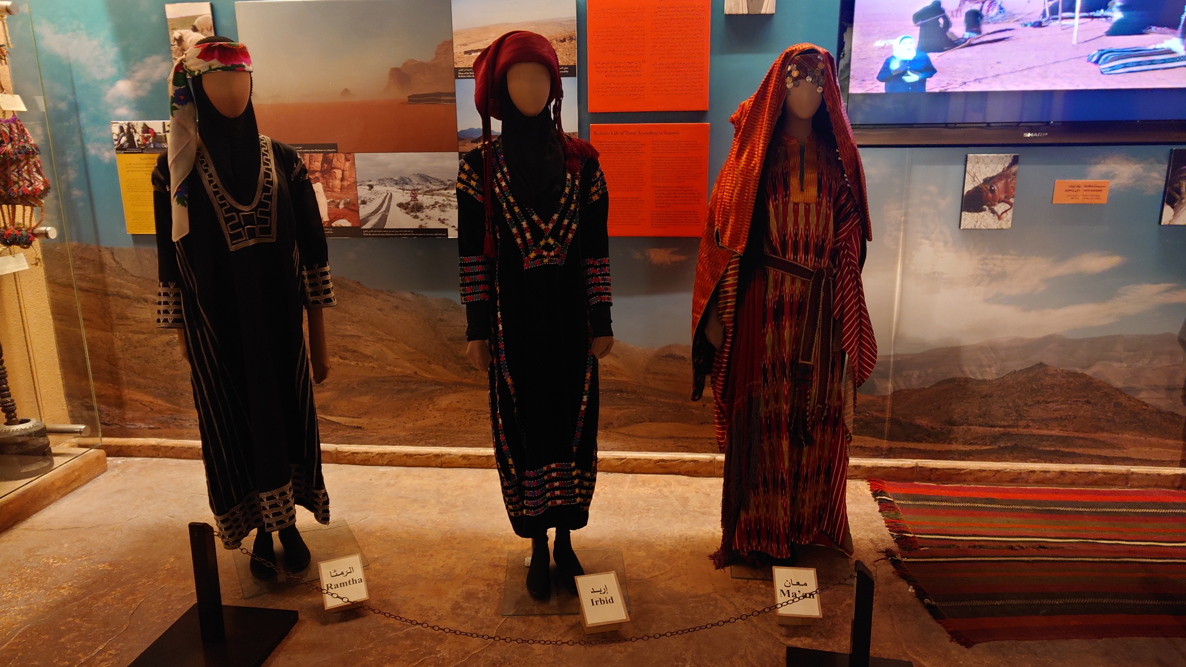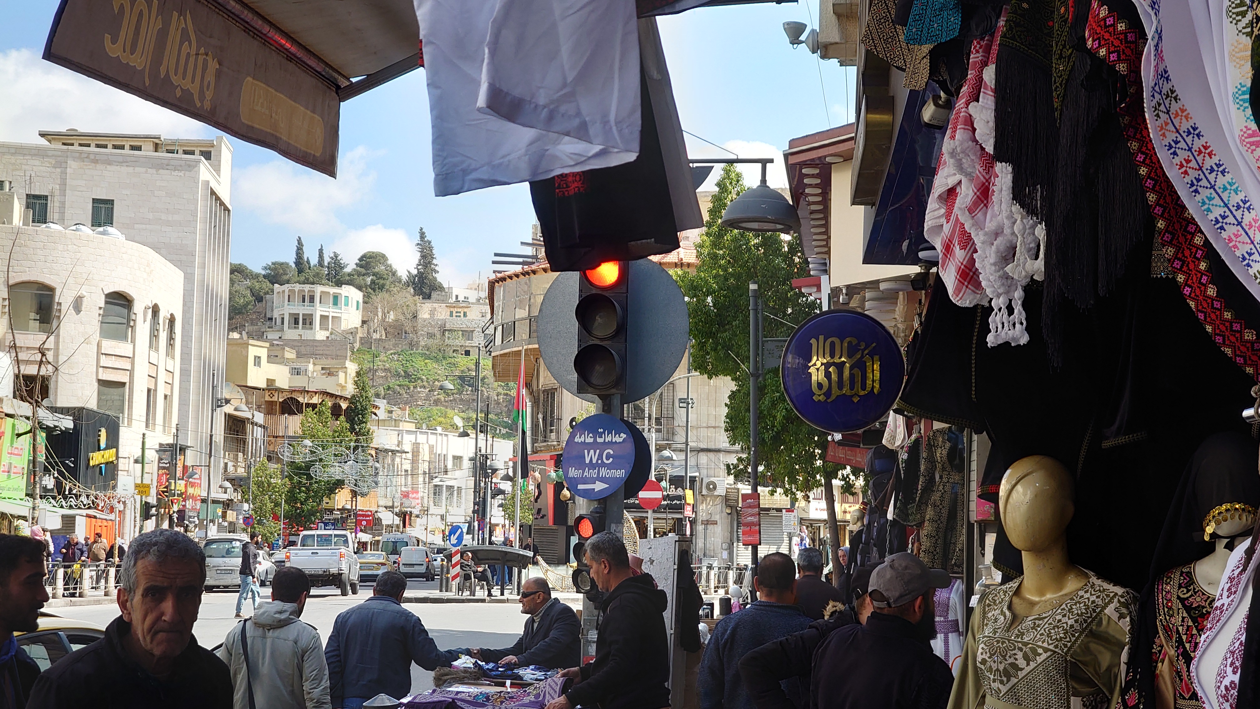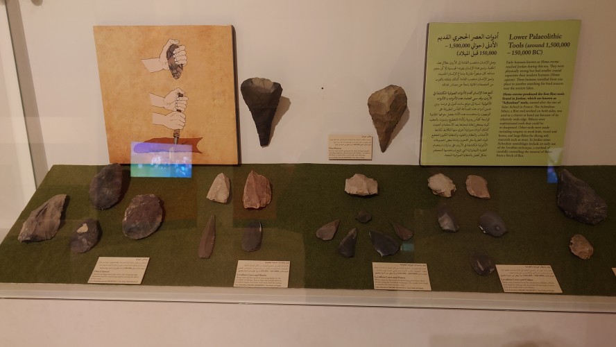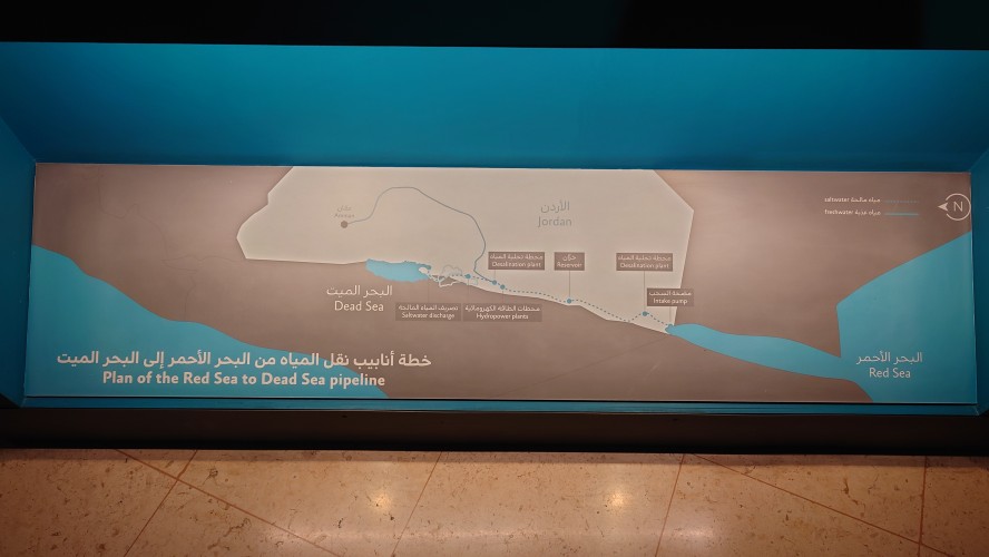 Weiter geht es für mich hinunter in die Altstadt. In der jordanischen Zentralbank gibt es ein Währungsmuseum. Ich schaue auch da schnell mal rein. Dann bin ich anscheinend in einer Art Marktstraße angelangt, in der alles verkauft wird. Nur Einzelhändler, alle spezialisiert. Es erinnert mich ein wenig an As Salt, nur deutlich alltäglicher. Ich merke, wie langweilig dagegen unser westliches Geschäftstreiben geworden ist. Hier wird zwar auch umgesetzt, aber man kommt vor allem auch direkt miteinander in Kontakt. Ich ertappe mich nur wie ich denke, dass das alles auch bei AliExpress bestellbar ist, was hier als Qualität aber vor allem auch Plagiate angeboten wird. Duma, Adiboss, Kalvi Klevin. Am Ende der Basarstraße taucht das Jordanische Nationalmuseum auf. Na wenn es schonmal da ist, gehe ich hinein. Was ich erfahre, habe ich aber schon in den vielen anderen Museen und Stätten im Land erfahren. Außer die Funde der Steinzeit, die waren neu für mich. Auch wurden wieder Frauengewänder ausgestellt, bei denen erkennbar wurde, dass im Grunde jede Stadt ihr eigenes Muster hat. Wie ein Mannschaftstrikot. Ein Bauprojekt hat meine Aufmerksamkeit erregt. Jordanien plant tatsächlich, Wasser vom roten Meer ins tote Meer zu leiten, um der weiteren Verlandung des Sees entgegenzuwirken.
